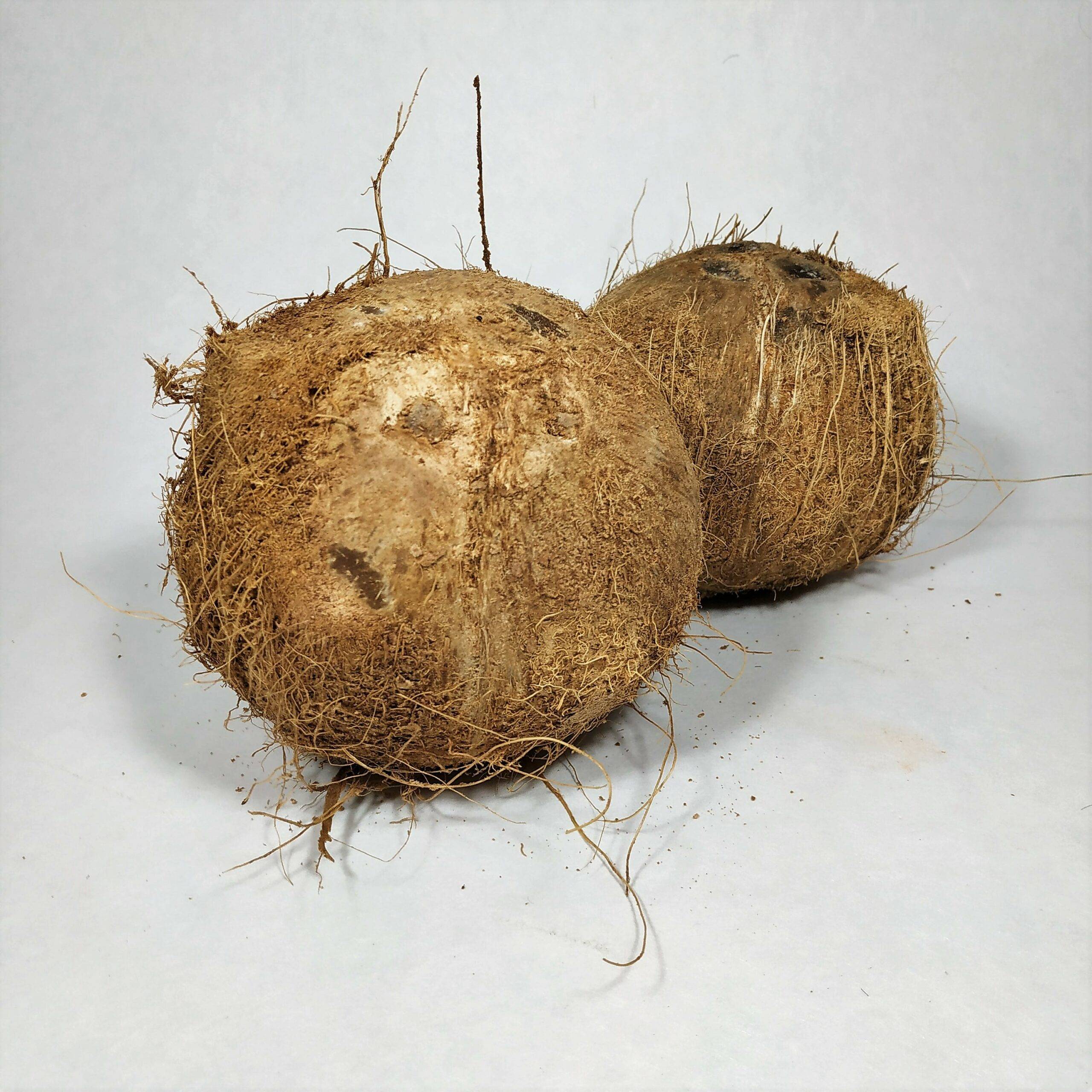 Fruit tropical à coque dure et fibreuse, contenant une chair blanche ferme et un jus légèrement sucré. La chair peut être consommée crue, râpée, cuite ou séchée, et le jus de coco est rafraîchissant et nutritif. Parfait pour pâtisseries, currys, smoothies et desserts exotiques.